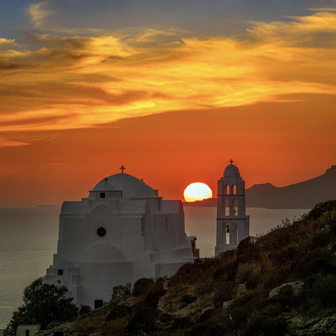 Φωτογραφία: Ανάργυρου Δεκαβάλλα, ο οποίος με τον φακό του έχει αποτυπώσει με μοναδικό τρόπο τη γοητεία του νησιού. Η Παναγιά με ηλιοβασίλεμα.