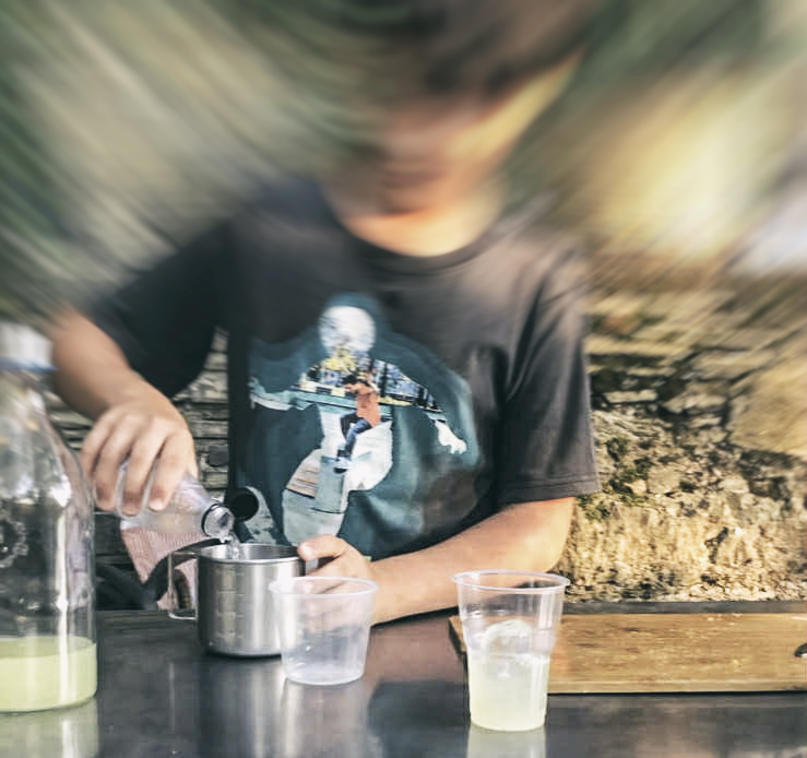 Μια αναπάντεχη έκπληξη περίμενε τους επισκέπτες το τριήμερο του Δεκαπενταύγουστου, κοντά στην Αδάμενα της Πορταριάς Πηλίου. Ο μικρός Λουκάς, με τη φρεσκότατη χειροποίητη δροσερή λεμονάδα του και τον χυμό από φρέσκα, ζουμερά πορτοκάλια, είχε στήσει έναν μικρό αυτοσχέδιο παράδεισο δροσιάς. Όσοι περπατούν προς τη Μακρινίτσα κάνουν πάντα μια στάση εκεί, στο σημείο που ξεκινά το Καλντερίμι των Κενταύρων. Και μια δροσερή λεμονάδα ήταν ακριβώς αυτό που χρειαζόμασταν…