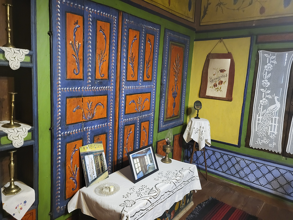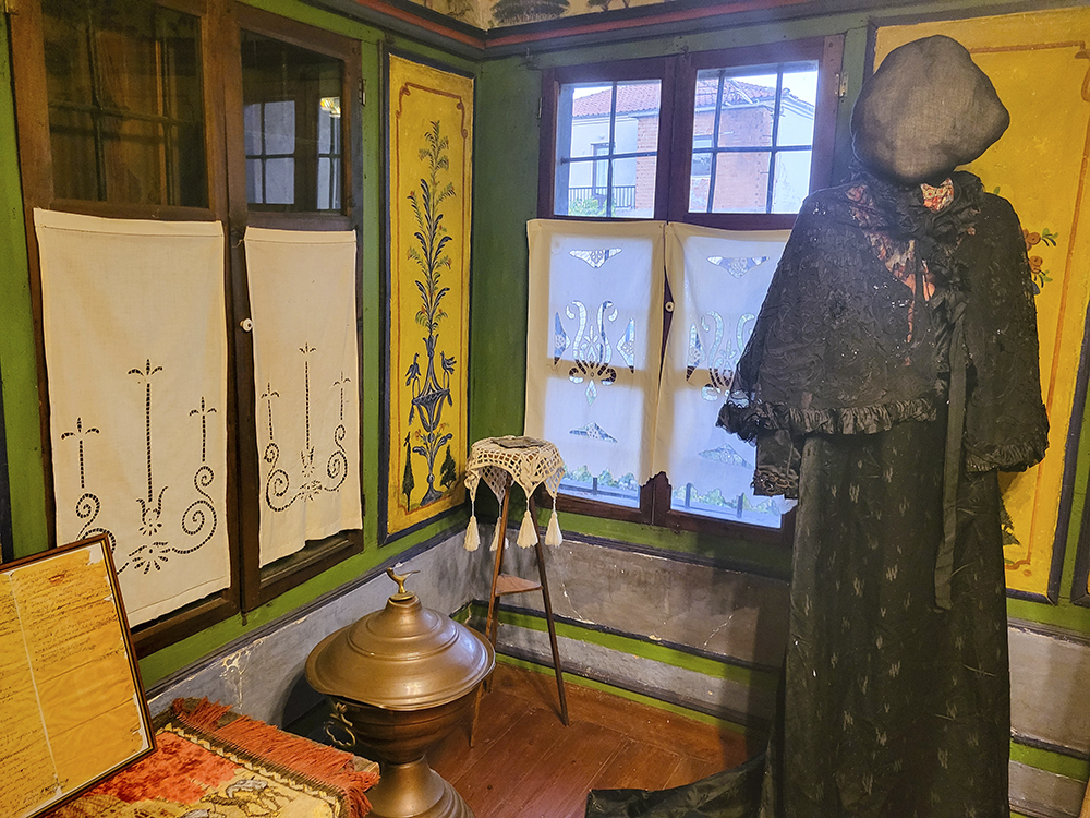 Οι οικογένειες ήταν Μητριαρχικές. Οι άνδρες λείπουν με το εμπόριο στην κεντρική Ευρώπη, τη Κύπρο και την Κωνσταντινούπολη. Ένα ταξίδι τους διαρκούσε οχτώ με εννέα μήνες. Όλα όσα συνέλεγαν από το ταξίδι τα έφερναν και τα τοποθετούσαν στα σπίτια τους. Στα μεγάλα αρχοντικά έχουμε και βιτρό. Εδώ δεν έχουμε. Αρκετά λαϊκή η τοιχογραφία του σπιτιού, με ωραία όμως στοιχεία και έντονα χρώματα».