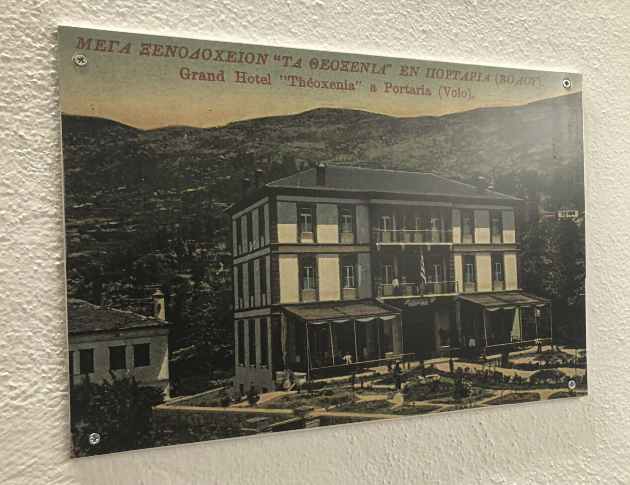 - Το Θεοξένια 1908-1944, βοήθησε αρκετά στην τουριστική ανάπτυξη της Πορταριάς που κορυφώθηκε τη δεκαετία του 1930. Σήμερα σώζονται στο Ιστορικό Λαογραφικό Μουσείο Πορταριάς κάποια μόνο από τα χρηστικά αντικείμενα του Θεοξένια. Πιάτα, κουρτίνα, Ποτήρια με το Καλλιγραφικό Λογότυπο του Ξενοδοχείου, που ακόμη και το λογότυπο του Θεοξένια προσδίδει λίγο από την αίγλη της εποχής εκείνης.