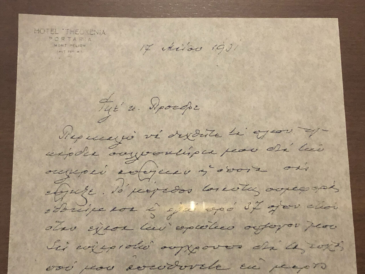 «Ο κ. Δασκαλάκης κατάφερε να διασώσει το σερβίτσιο του ξενοδοχείου που έχουμε σήμερα στην κατοχή μας. Στην Καινούρια έκθεση του Μουσείου. Σκοπός μας είναι να προβάλουμε το Ιστορικό κομμάτι της Πορταριάς, κι όχι τόσο το Λαογραφικό. Οπότε κάθε αίθουσα είναι διαφορετική. Και σε κάθε αίθουσα έχουμε ένα αντικείμενο που είναι πάρα πολύ σπάνιο. Κάτι που δε βλέπουμε συχνά σε μουσεία. Το σερβίτσιο, το Μουσικό Κουτί… είναι μερικά από αυτά». Μας επισημαίνει ο Νίκος, ο επιμελητής του Μουσείου.